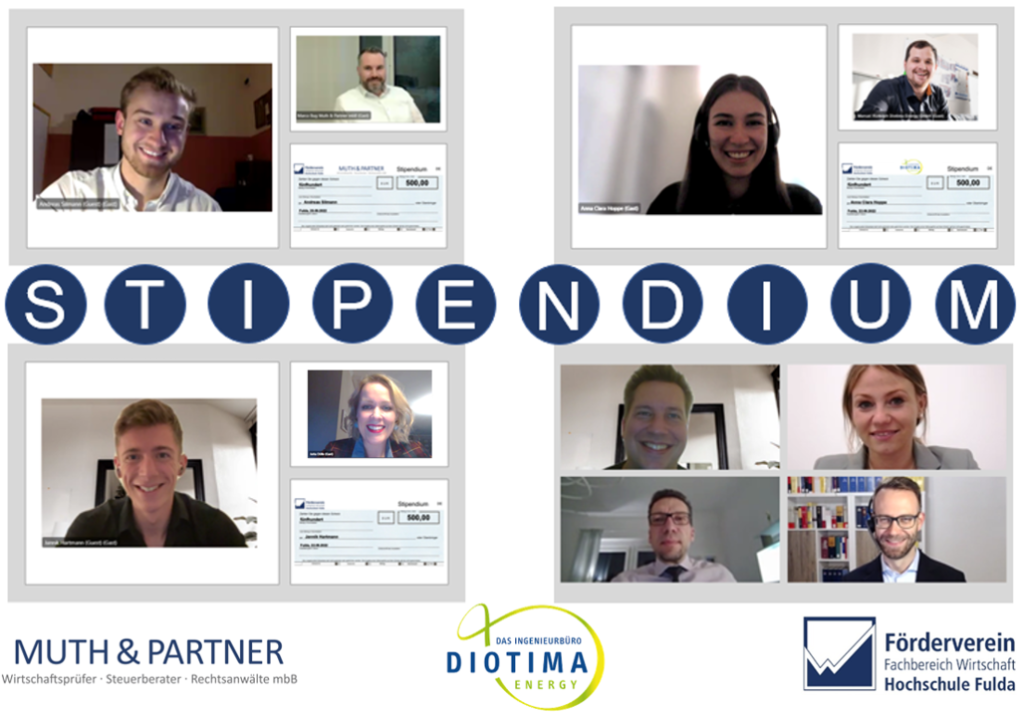 Erneut war es dem Verein der Freunde und Förderer des Fachbereichs Wirtschaft der Hochschule Fulda e. V. möglich, Unternehmensstipendien für das Sommersemester 2022 auszuschreiben. Ein großer Dank hierbei geht an folgende Unternehmen, die ein Stipendium in Höhe von 500 € ermöglicht hatten: